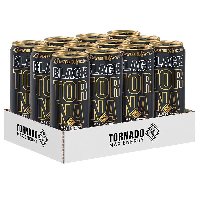 Напиток энергетический Tornado Max Energy Black, объемом 450 мл в упаковке из 12 штук, является безалкогольным энергетиком со вкусом тропических фруктов. Он повышает скорость реакции и способствует концентрации внимания.