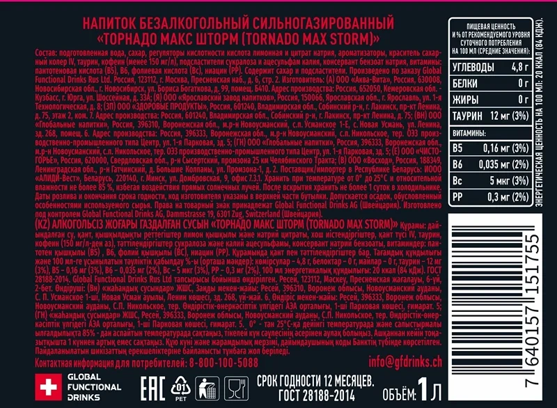 | Особенности состава | с витаминами; с кофеином; с таурином |