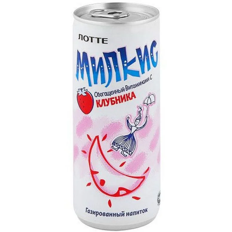 Безалкогольный напиток 'Milkis' со вкусом клубники марки Lotte удивит вас своей оригинальностью, ведь не каждый день встретишь газированное молоко! А яркий и забавный дизайн баночки подогреет ваш интерес. Напиток обладает ни с чем не сравнимым сливочно-ягодным вкусом, который точно не оставит вас равнодушным и влюбит в себя с первого глотка!