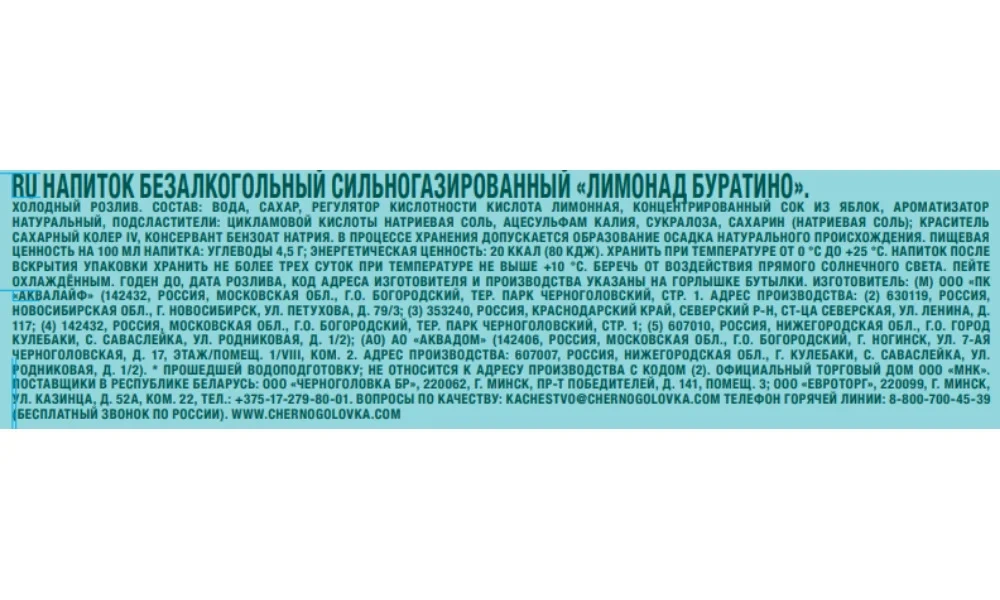| Вкус | буратино |