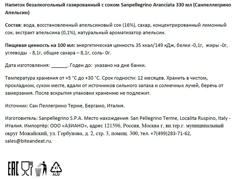 | Производитель | S.Pellegrino |