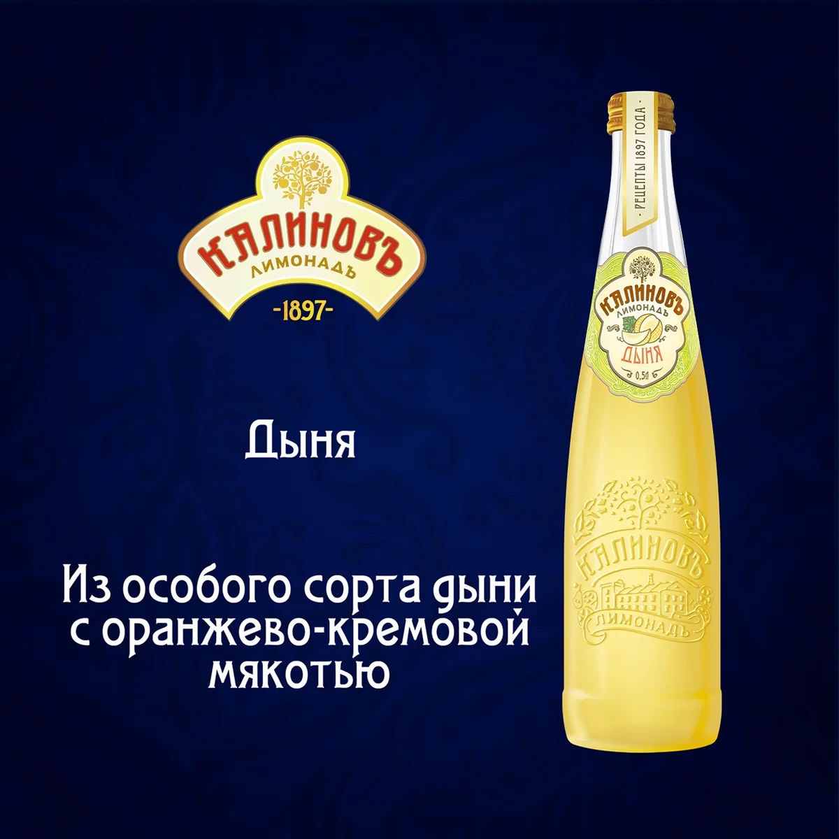 Калиновъ Лимонадъ Винтажный – премиальная линейка лимонадов с использованием рецептур конца XIX века. Разнообразие ягодных, фруктовых и травяных лимонадов, разлитых в изящные стеклянные бутылки, перенесёт вас в эпоху царской России. В составе Калиновъ Лимонадъ концентрированные соки, природная вода, натуральные экстракты и ароматизаторы. Превосходное качество исполнения напитков не оставит равнодушными даже самых взыскательных любителей лимонадов. Калиновъ Лимонадъ Винтажный Дыня – ароматный напиток из особого сорта дыни-красавицы с оранжево-кремовой сочной мякотью. Каждый глоток лимонада подарит истинное наслаждение и хорошее настроение. Наследие традиций в богатстве вкусов.