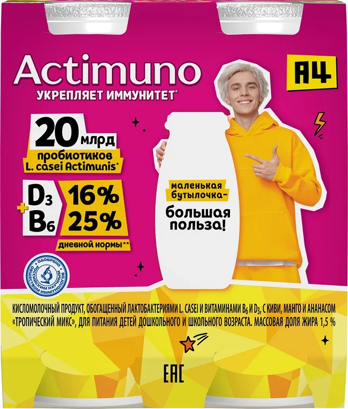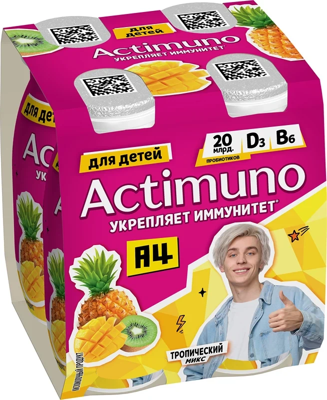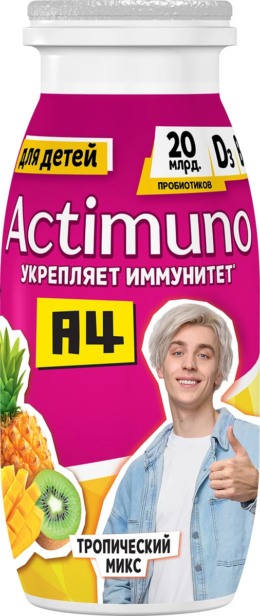 Напиток кисломолочный Actimuno Kids тропический микс 1.5%, 95г