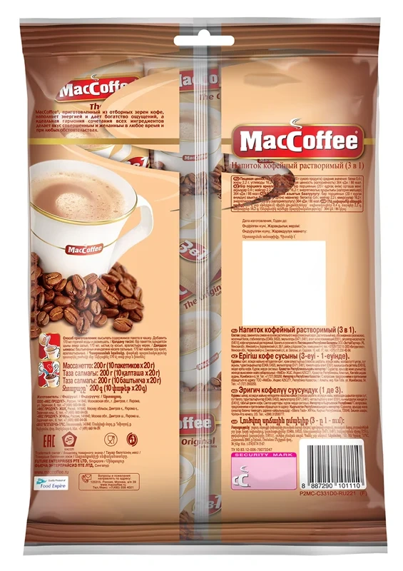 Кофейный напиток MacCoffee Оригинал 3в1 - это смесь отборных кофейных зёрен, немолочных сливок и сахара. Это сочетание даёт яркий и неповторимый вкус и насыщенный аромат. Идеальная чашка кофе, которая дарит наслаждение всегда и везде.