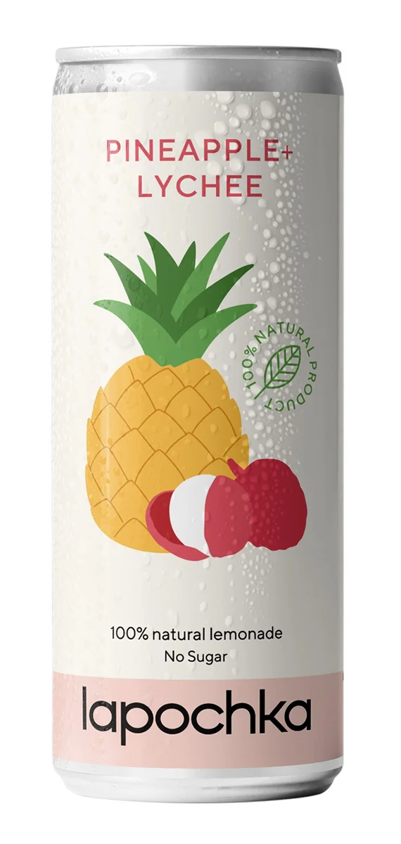 Необычные сочетания только лучших натуральных ингредиентов, смешанных без добавления сахара, ароматизаторов и подсластителей, — бесхитростный рецепт лимонадов Лапочка. Это освежающий органический лимонад с ярким сочетанием тропических оттенков. В рецептуру лимонада входят чистая вода и натуральные соки ананаса и личи. Натуральный освежающий лимонад из сока ароматного личи и сладкого ананаса. Не содержит добавленного сахара, красителей и ароматизаторов. Яркий фруктовый вкус с тропическими нотками и бодрящая кислинка. Удобную жестяную баночку легко прихватить с собой на прогулку, в кино или на пикник.