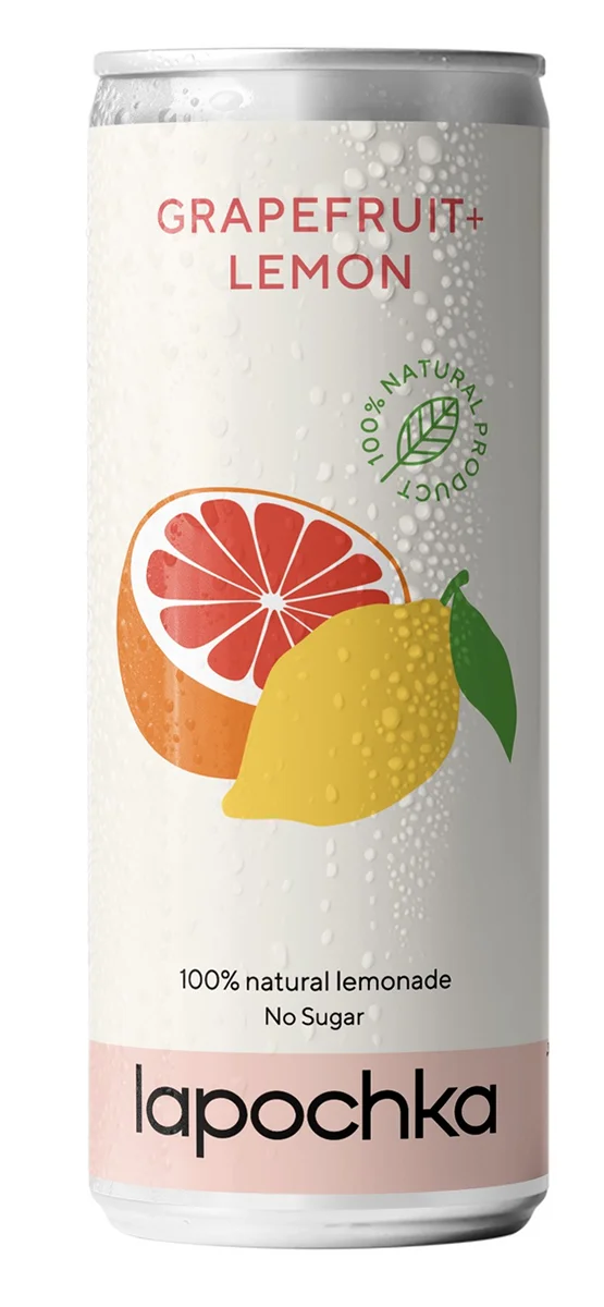 Необычные сочетания только лучших натуральных ингредиентов, смешанных без добавления сахара, ароматизаторов и подсластителей, — бесхитростный рецепт лимонадов Лапочка. Это освежающий органический лимонад с классическим сочетанием цитрусовых оттенков. В рецептуру лимонада входят чистая вода и натуральные соки лимона и красного грейпфрута. Натуральный освежающий лимонад из сока ароматного грейпфрута и лимона. Не содержит добавленного сахара, красителей и ароматизаторов. Яркий цитрусовый вкус с бодрящей кислинкой. Удобную жестяную баночку легко прихватить с собой на прогулку, в кино или на пикник.