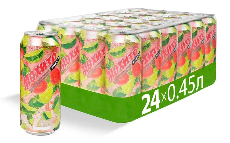 Напиток Мохито Fresh клубника газированный, 450мл x 24 шт- классический безалкогольный мохито с добавлением освежающего сока клубники. Аромат насыщен сладкими тонами клубники, свежими нотами мяты ицитрусовых. Вкус напитка мягкий, снежными нотами спелой клубники, лайма имяты.