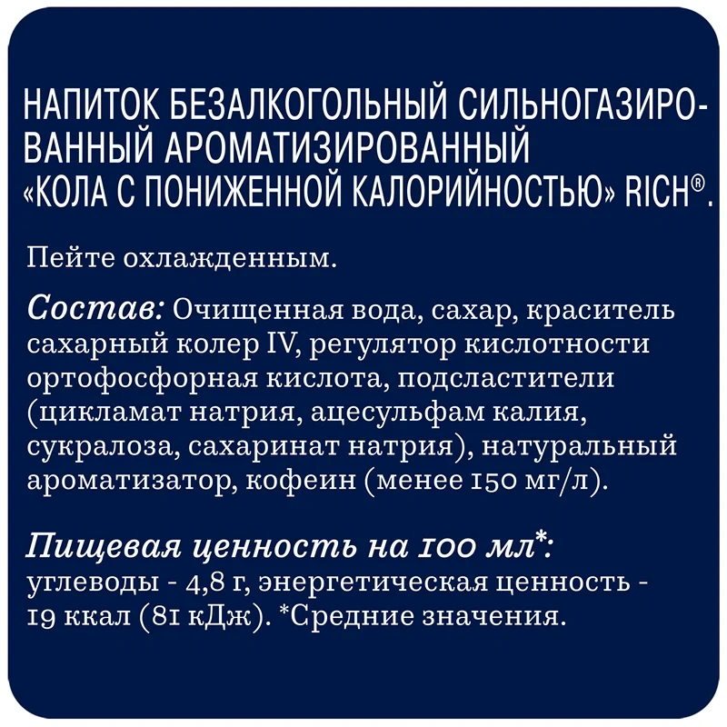 Вода подготовленная, сахар, апельсиновый сок, пюре манго, сок лимона, сок лайма, яблочный сок, растительные экстракты, регулятор кислотности - лимонная кислота, стабилизатор - гуммиарабик, эмульгатор - эфиры глицерина и смоляных кислот, натуральные ароматизаторы манго и мяты, краситель - бета-каротин, подсластители - натриевая соль цикламовой кислоты, ацесульфам калия, сукразола, сахарин натриевая соль, антиокислители - аскорбиновая кислота, альфа-токоферол.
