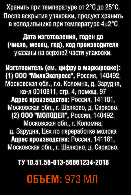 | Стандарт производства | ту 10.51.56-013-56861234-2018 |