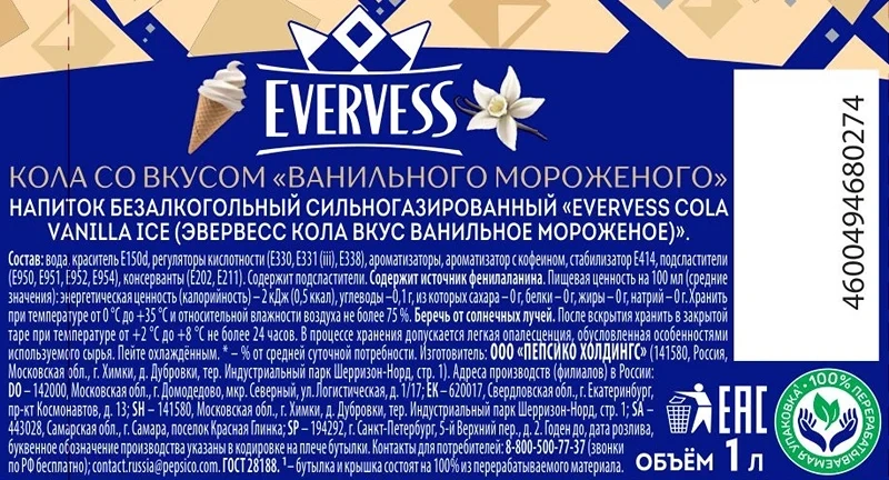 Вода подготовленная, сахар, регулятор кислотности (лимонная кислота), ароматизатор пищевой 'Фейхоа', натуральный ароматизатор 'тип Фейхоа', красящий концентрат из сафлора, стабилизатор (гуммиарабик), растительное масло (пальмовое), гидрогенизированное кокосовое масло, антиокислитель (аскорбиновая кислота), красители (бриллиантовый голубой Е133, сахарный колер IV), консерванты (бензоат натрия, сорбат калия).