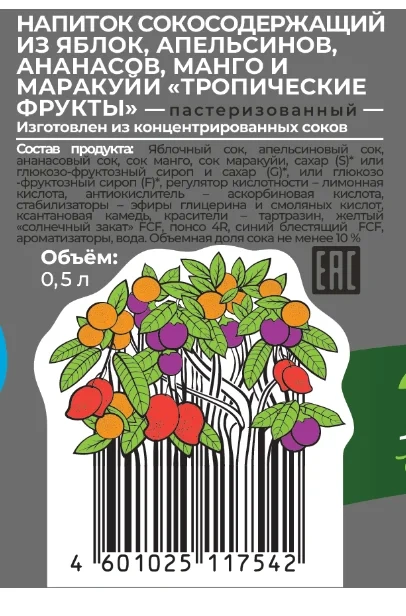 Напиток сокосодержащий Фрутмотив тропический микс, 500мл