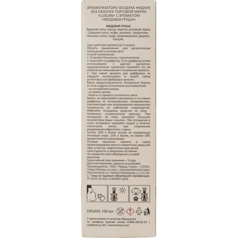 Наполнитель аромадиффузор Luscan Медовая груша 100 мл