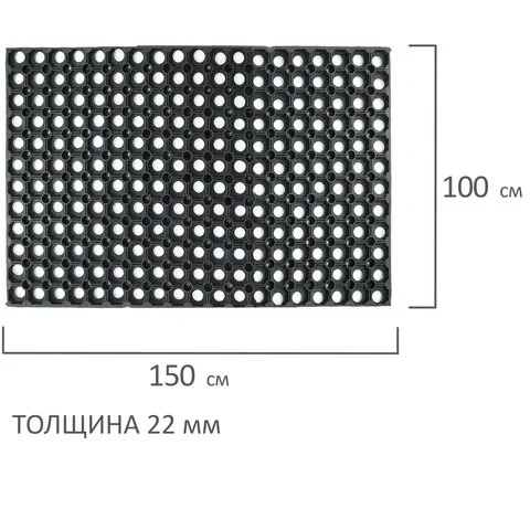 Коврик придверный Laima 100х150см, толщина 22мм, резиновый, грязесборный, ячеистый