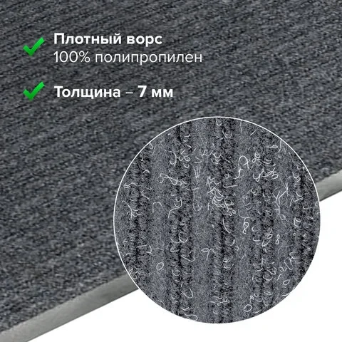 Ковровая дорожка Laima Expert серая, 1.2х10м, влаго-грязезащита, 430 г/м2, ребристая