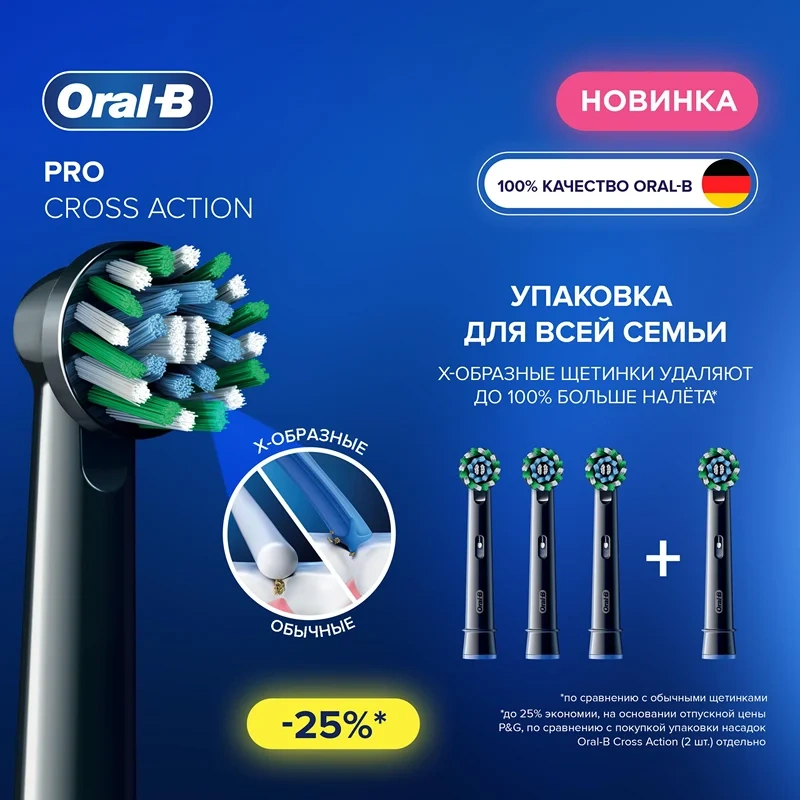 Насадка для электрической зубной щетки Oral-B CrossAction EB50BRB, 4шт