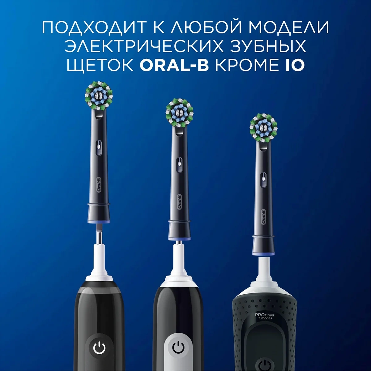 Набор сменных насадок Oral-B Cross Action Black создан для полноценного ежедневного ухода за полостью рта. Насадки для электрических щеток разработаны совместно со стоматологами и рекомендованы специалистами по всему миру. Круглая насадка Cross Action Black охватывает каждый зуб, эффективно очищая его со всех сторон. Расположенные под углом 16 градусов щетинки, легко проникают в межзубное пространство и удаляют налет вдоль линии десен. Электрические щетки с круглыми насадками бережно очищают эмаль, обеспечивая лучший результат, чем мануальные аналоги. Особенности насадок: технология CleanMaximiser — зеленые щетинки-индикаторы меняют цвет на желтый, когда приходит время замены; совместимы со всеми электрическими зубными щетками Oral-B, кроме линейки iO и Pulsonic; подходят для ухода за чувствительными зубами и деснами. Выбирайте Oral-B — это марка зубных щеток № 1, используемая большинством стоматологов мира. **На основании международных опросов P&G, проводимых среди репрезентативной выборки стоматологов регулярно, в т. ч. в 2013-2019 гг.