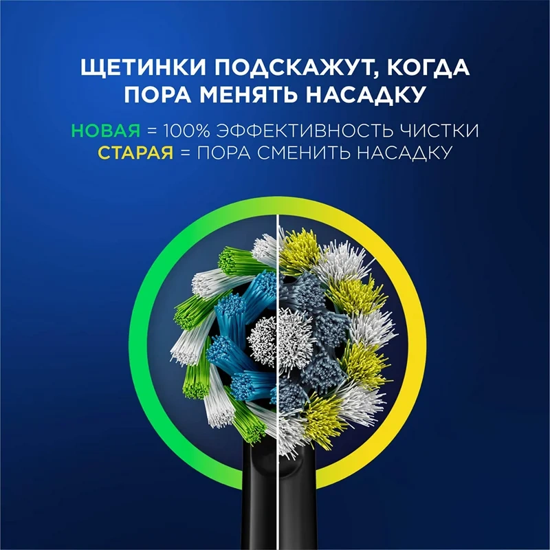 Инновационные сменные насадки Oral-B PRO Cross Action Black для электрических зубных щеток Oral-B созданы совместно со стоматологами для эффективной ежедневной гигиены полости рта. Адаптивные Х-образные щетинки проникают во все участки полости рта, удаляя до 100% больше зубного налета и обеспечивая глубокое очищение там, куда не дотягиваются обычные круглые щетинки. Благодаря круглой форме и наклонному расположению щетинок, насадки PRO CrossAction средней жесткости повторяют контуры каждого зуба, обеспечивая равномерное очищение со всех сторон. Тонкие перекрестные щетинки, расположенные под углом 16 градусов, хорошо прочищают межзубные промежутки и пространство вдоль линии десен, а также массируют и защищают десны. Улучшенные насадки с технологией CleanMaximiser помогут не забыть вовремя поменять насадку: зеленые щетинки насадок становятся желтыми, когда приходит время замены. Для более эффективной чистки стоматологи рекомендуют менять насадку каждые 3 месяца. Комплекта из шести насадок хватит на полтора года ежедневного использования.