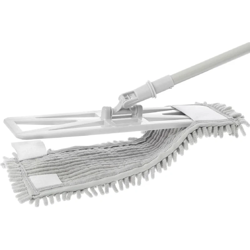 Насадка МОП для швабры-флаундера из микрофибры подходит для влажной уборки всех видов напольных покрытий. Ткань шенилл обладает высокой впитываемостью, не царапает поверхность и хорошо удаляет как обычные, так и жировые загрязнения. Материал устойчив к износу и сохраняет свойства при регулярном использовании.