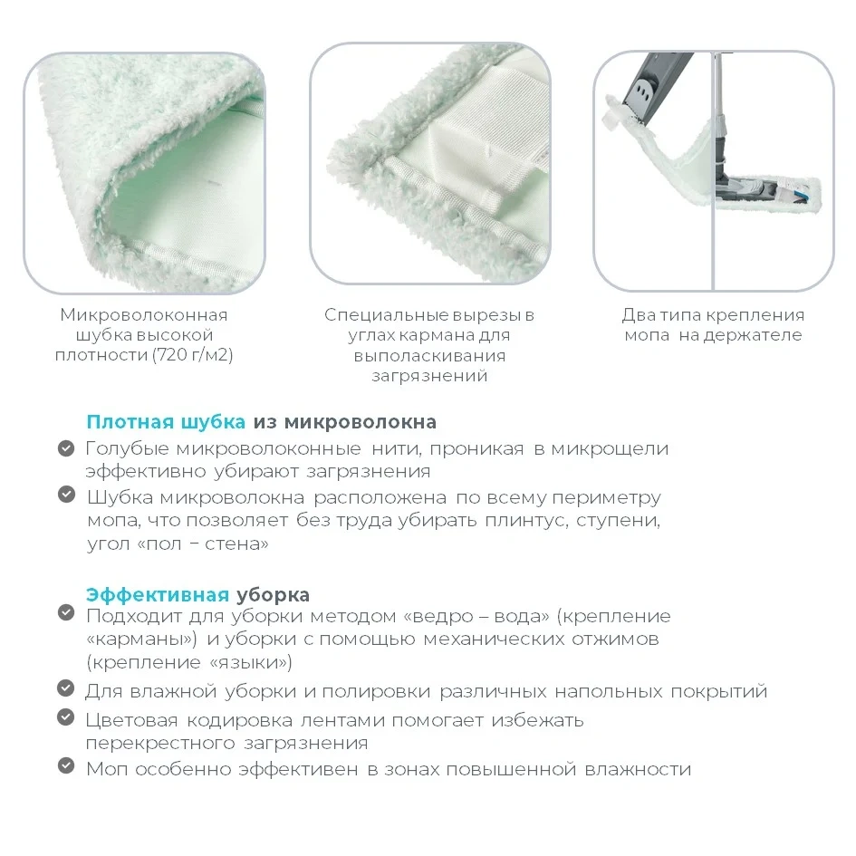 Плоский моп Hq Profiline Sapphire 40см, карман-язык, микроволокно, 77082