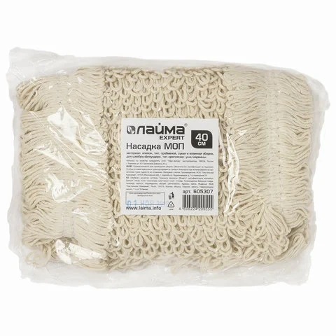 Моп имеет форму плоского прямоугольника, такая форма и чистящая поверхность из ворса длиной 3.5 см позволяет удобно собрать грязь по углам и захватить большую площадь убираемой поверхности, что в свою очередь уменьшает временные затраты на уборку больших площадей. Устойчива к износу, что обеспечивает долгий срок службы уборочного инструмента. Выполнена из хлопка, имеет размер 40х14 см. Выдерживает до 300 циклов стирки. Максимальный объем впитывания - 500 мл.