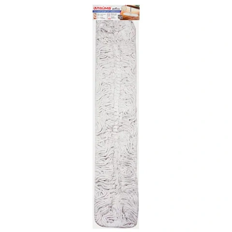 Моп имеет форму плоского прямоугольника, такая форма и чистящая поверхность из ворса длиной 6 см позволяет удобно собрать грязь по углам и захватить большую площадь убираемой поверхности, что в свою очередь уменьшает временные затраты на уборку больших площадей. Устойчива к износу, что обеспечивает долгий срок службы уборочного инструмента. Выполнена из хлопка и имеет размер 90х15 см. Максимальный объем впитывания - 600 мл. Используется в комплекте со шваброй, крепится к держателю с помощью карманов и завязок.