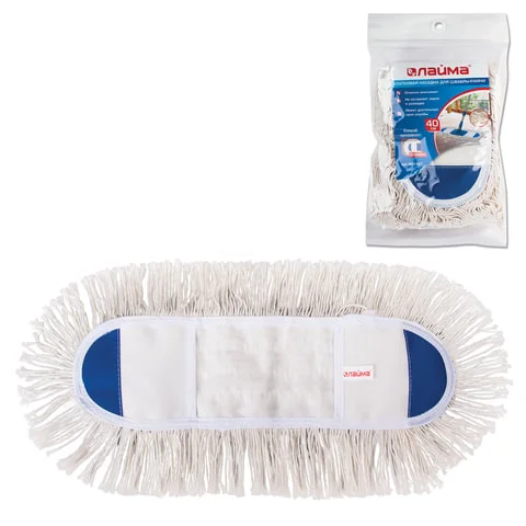 Моп имеет форму плоского прямоугольника, такая форма и чистящая поверхность из ворса длиной 5 см позволяет удобно собрать грязь по углам и захватить большую площадь убираемой поверхности, что в свою очередь уменьшает временные затраты на уборку больших площадей. Устойчива к износу, что обеспечивает долгий срок службы уборочного инструмента. Выполнена из хлопка, имеет размер 40х11 см. Максимальный объем впитывания - 300 мл. Используется в комплекте со шваброй, крепится к держателю с помощью карманов.