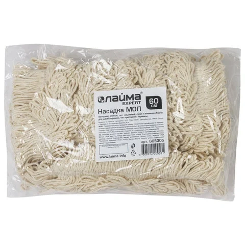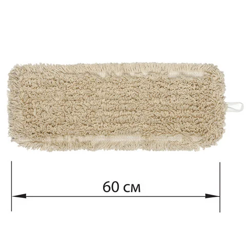 Моп имеет форму плоского прямоугольника, такая форма и чистящая поверхность из ворса длиной 3.5 см позволяет удобно собрать грязь по углам и захватить большую площадь убираемой поверхности, что в свою очередь уменьшает временные затраты на уборку больших площадей. Устойчива к износу, что обеспечивает долгий срок службы уборочного инструмента. Выполнена из хлопка, имеет размер 60х14 см. Выдерживает до 300 циклов стирки. Максимальный объем впитывания - 600 мл.