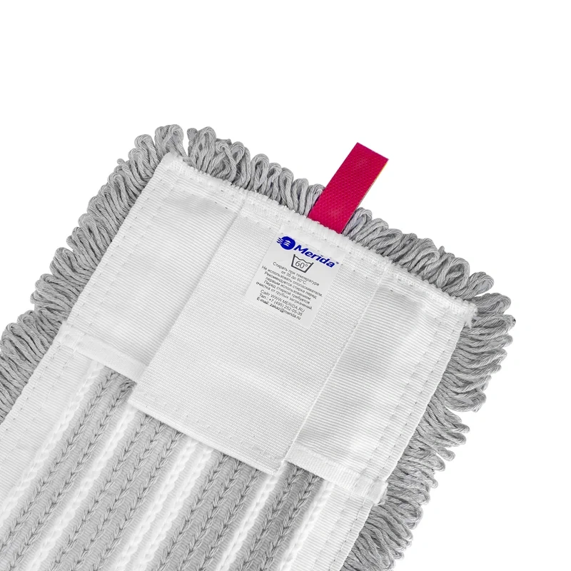 Моп петельный универсальный MERIDA КОМФОРТ для влажной уборки пола с ярлыками для цветовой кодировки зон уборки. Универсальный - крепится к флаундеру дополнительными клапанами (ушками) из ткани или с помощью карманов, для средних загрязнений, отлично подходит для пористого керамогранита.