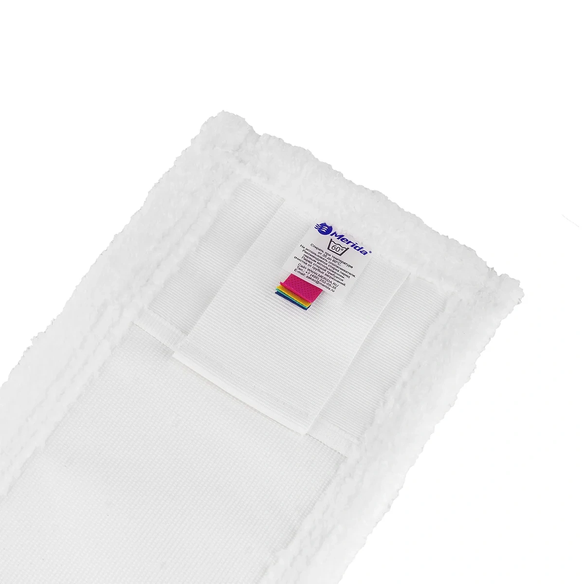 Моп из коротковорсовой микрофибры Merida для влажной уборки пола с ярлыками для цветовой кодировки зон уборки. Универсальный - крепится к флаундеру дополнительными клапанами ушками из ткани или с помощью карманов, идеально подойдет для уборки потолка или стен, а также для полов из камня или дерева.