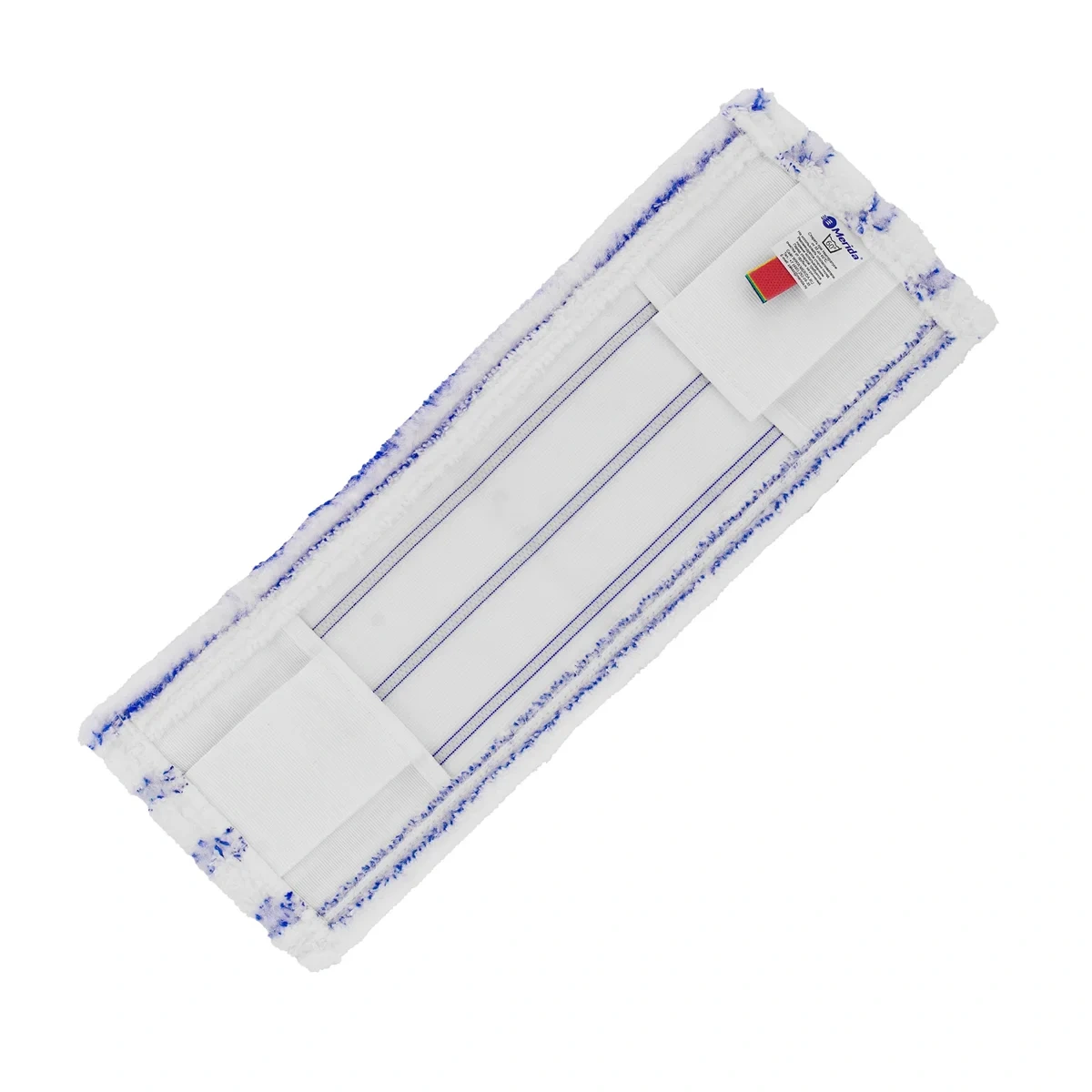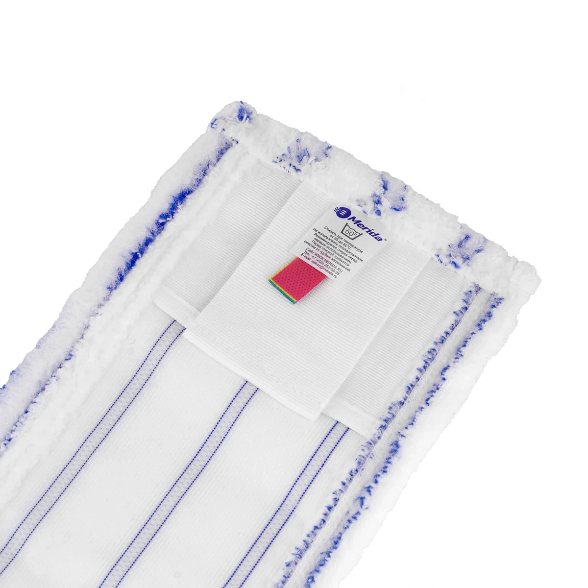 Моп из коротковорсовой микрофибры с абразивом Merida для влажной уборки пола с ярлыками для цветовой кодировки зон уборки. Универсальный - крепится к флаундеру дополнительными клапанами ушками из ткани или с помощью карманов, идеально подойдет для уборки потолка или стен, а также для полов из камня или дерева.