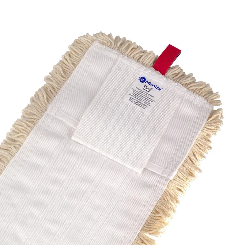 Моп петельный универсальный MERIDA КОМФОРТ для влажной уборки пола с ярлыками для цветовой кодировки зон уборки. Устойчив к кислотам и щелочам, содержащимся в профессиональных моющих средствах.