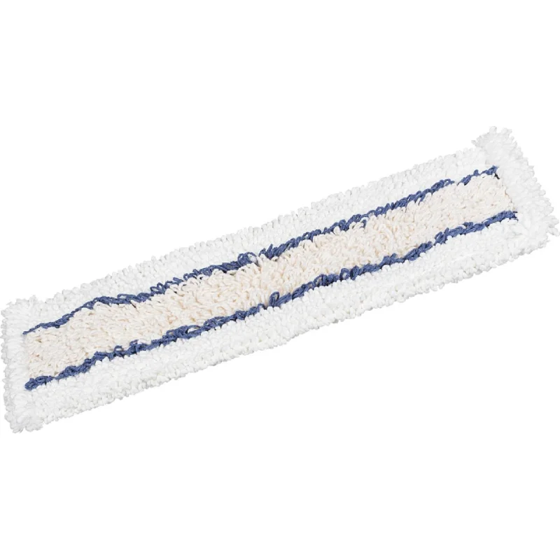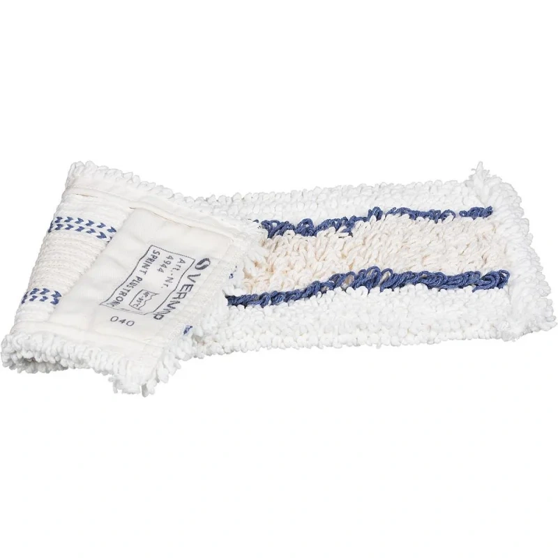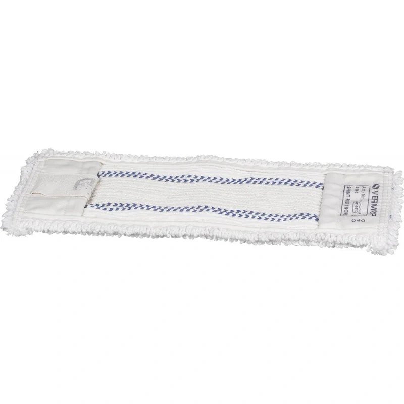 Насадка МОП плоская Vermop Спринт Плюс Троник микроволоконный. Комбинированные мопы Vermop Sprint Plus Tronic чрезвычайно долговечны и выдерживают многократную стирку до 600 циклов (стирать при температуре 95 градусов и сушить при температуре 65 градусов, не сушить на батарее). Выполнены из качественного сырья, что гарантирует высокий уровень уборки. Подходят для любых наполных покрытий. Технология Tuft, разработанная и запатентованная фирмой Vermop, позволяет так прочно ввязывать петли в основу, что каждая из них выдерживает нагрузку до 10 килограмм, а высокое качество волокна, используемого для изготовления основы, является залогом долговечности мопа. Специальное сплетение нитей, а также их различная длина и плотность на моющей поверхности мопа и с боковых сторон позволяет Вам мыть и подметать одновременно, так как весь мусор будет собираться в петлях мопа. На рабочей стороне мопа цветовое кодирование в виде двух полос: синее, красное, зеленое или желтое. Способ крепления: карманы и лента для бесконтактного отжима. Назначение: эффективное удаление грязи и впитывание воды. Для всех видов уборки. Состав: полиэстер и хлопок.