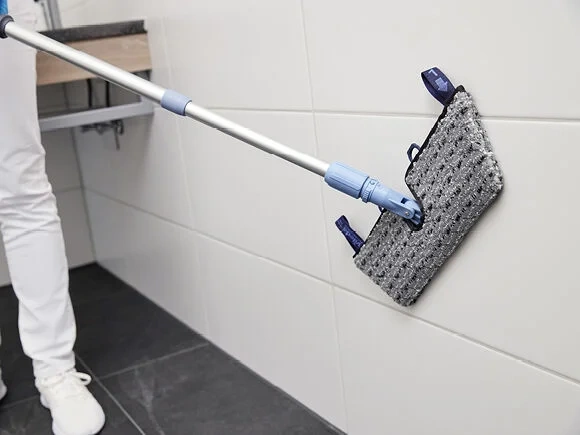 Трапециевидная форма обеспечивает плотное прилегание мопа к полу и позволяет легко управлять мопом и эффективно собирать загрязнения.
