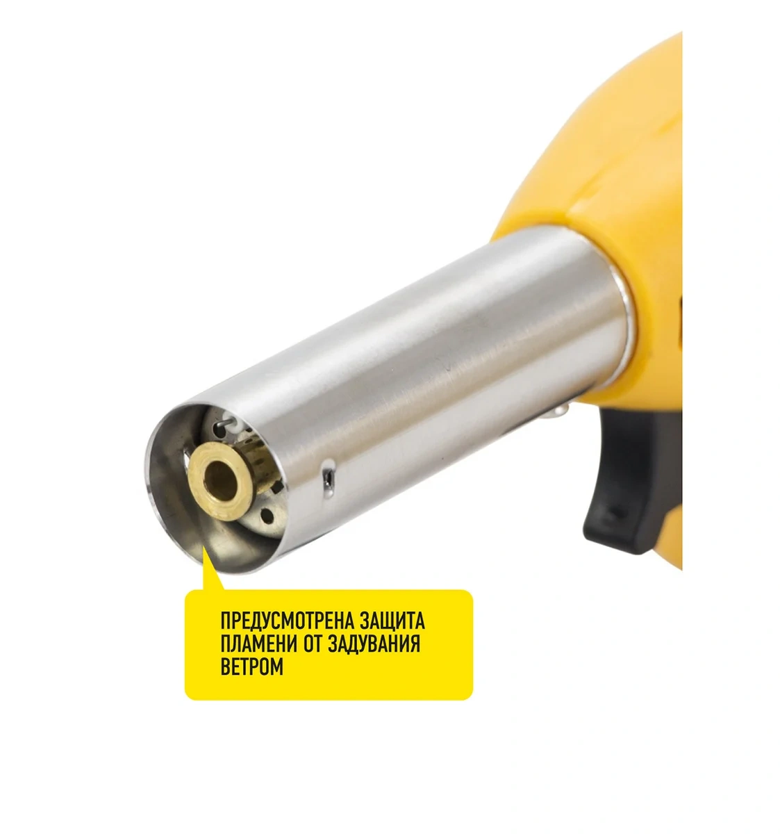 Горелка газовая туристическая с пьезоподжигом и регулировкой пламени имеет курковый пьезоподжиг, а также оснащена функцией регулировки пламени. Предусмотрена защита пламени от задувания ветром. Горелка работает на газовом топливе в стандартных газовых баллонах (220г) с клапаном нажимного типа и цанговым захватом. Номинальное давление используемого газа: 0,4МПа. Средний расход газа: 80г/ч. Температура пламени: 1300С. Номинальная тепловая мощность: 1,2кВт.