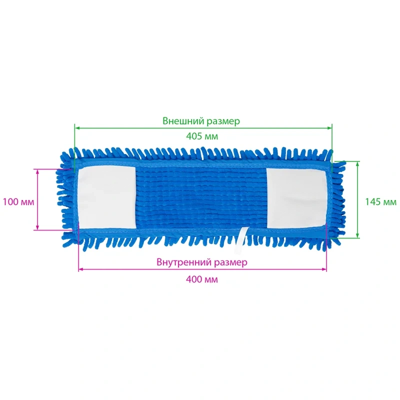 Тип насадки: плоская для складного флаундера. Материал: ворсистая микрофибра. Крепление насадки: карманы. Максимальный объем впитывания: 400 мл. Размер насадки внешний: 40,5 х 12,5 см. Размер насадки внутренний: 40 х 10 см. Длина ворса: 2 см. Цвет: синий. Вес: 100 г. Подходит к швабре (Код: 303056) и флаундеру (Код: 303090, 303091).