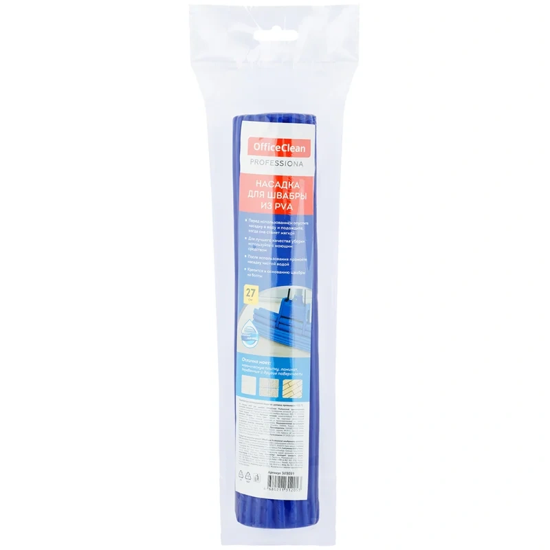 Насадка для самоотжимной швабры OfficeClean Professional из износостойкого PVA (ПВА) предназначена для проведения влажной уборки полов, ковровых покрытий, а также для мытья окон и стен. Подходит к держателю швабры (Код: 303270, 303055) и крепится при помощи 4-х болтов. Данный вид насадок прекрасно впитывает воду, собирает грязь, притягивает пыль, мелкий мусор, песок, шерсть домашних животных, а также отлично собирает волосы с пола и ковров. При погружении насадки в воду весь мусор и грязь остаются в воде.