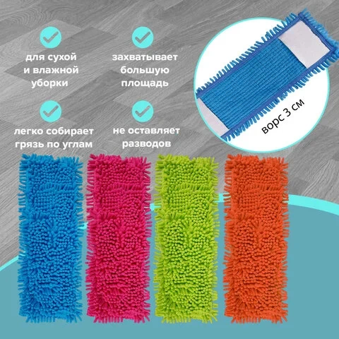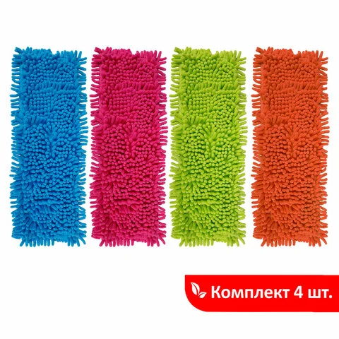 Насадка МОП КОМПЛЕКТ 4 шт., УНИВЕРСАЛЬНАЯ для швабр 38-42 см (ТИП К), микрофибра букли/синель, ЛАЙМА