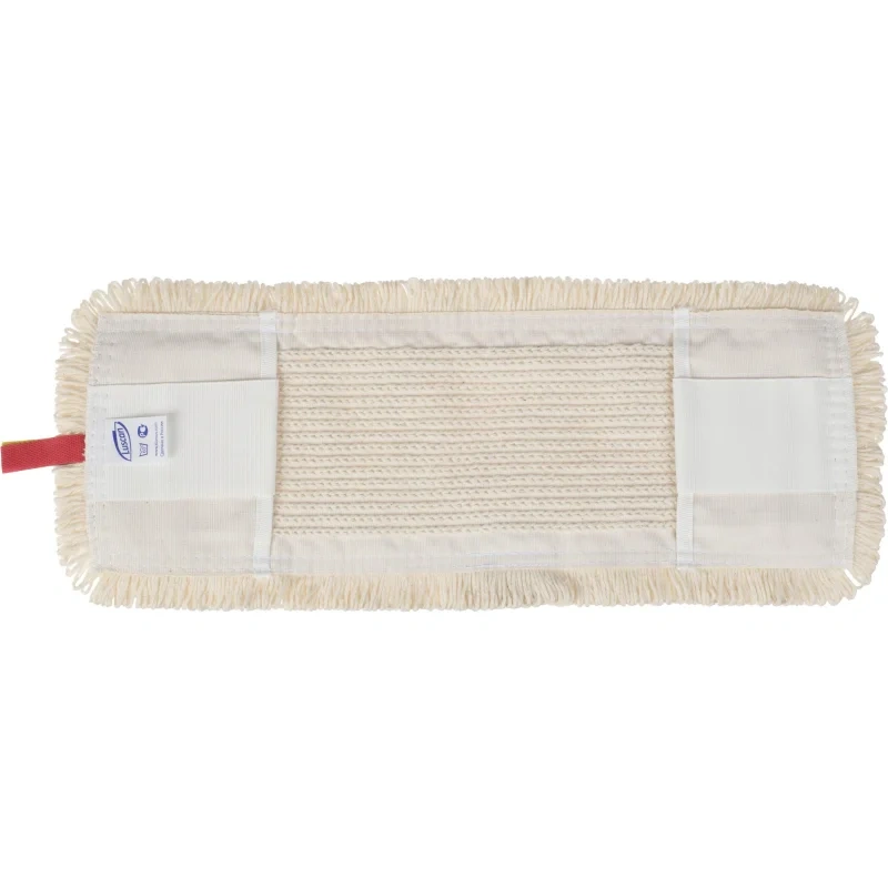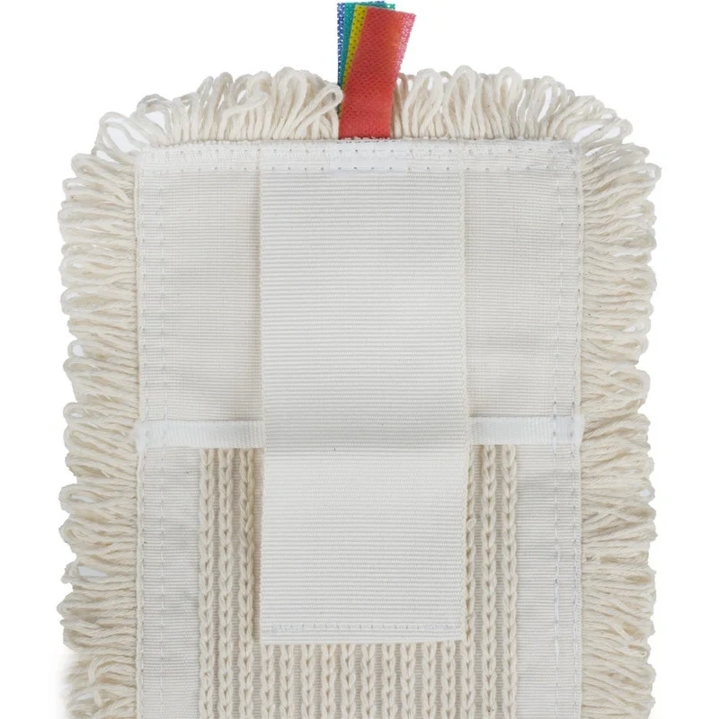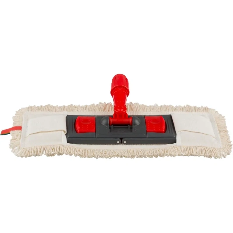 Насадка МОП хлопок Luscan. Насадка имеет одновременно два вида крепления: карманы и ушки. Максимальный объем впитывания: 40 сантиметров — 300 миллилитров. Применяется на кухнях и в туалетах для сбора водных разливов и как основная насадка, на низко бюджетных объектах. Сфера применения МОПа: рестораны, кафе, столовые, гостиницы и т. д. Уход за МОПом: стирка при температуре до 60 °С, допускается сушка в барабане стиральной машины, не отбеливать. Выдерживает до 300 циклов стирки. Есть ярлыки цветового кодирования ХАСП. Благодаря использованию технологии тафтинга, петли не скатываются в ряду, увеличивая эффективность работы мопа, прочность и, как следствие, качество уборки. Отлично впитывает и собирает грязь. Размер: 40×11 сантиметров. Может использоваться с держателями шириной не более 11 сантиметров.