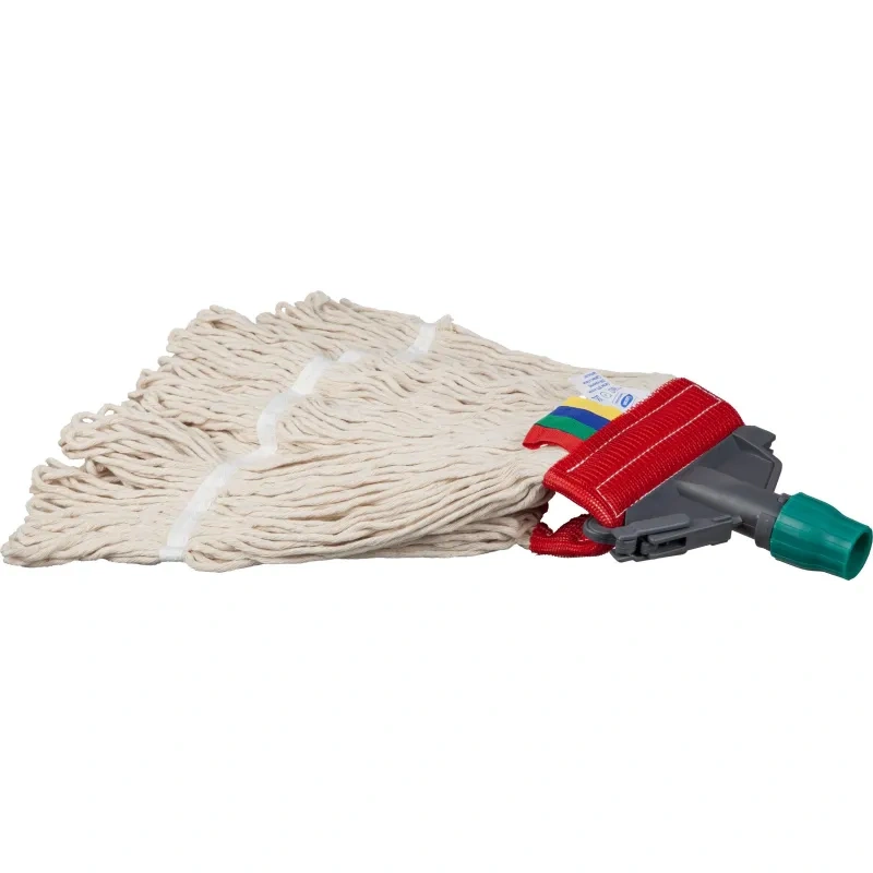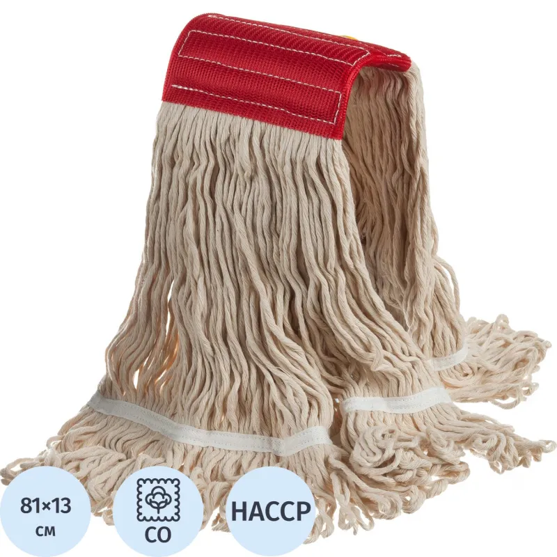 Насадка МОП из хлопка предназначена для верёвочной швабры и применяется для влажной уборки. Прочные хлопковые нити с добавлением полиэстера отличаются высокой гигроскопичностью, быстро впитывают влагу и эффективно собирают загрязнения. Насадка хорошо отжимается, не оставляет разводов на глянцевых покрытиях, таких как плитка, мрамор и гранит, и подходит для уборки как дома, так и в офисе. Цветовое кодирование позволяет использовать её в соответствии с требованиями ХАССП, снижая риск перекрёстного загрязнения.