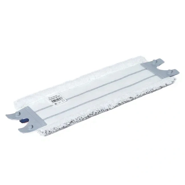 Насадка МОП Росмоп из микрофибры 36×15 см белая/серая предназначена для швабры-флаундера (плоской) и подходит для влажной и сухой уборки. Благодаря вставкам из полиэстера с полосами скольжения она легко двигается по поверхности и снижает нагрузку на персонал, делая уборку менее утомительной. Конструкция оптимизирована для ручного отжима — насадка равномерно отжимается и оставляет меньше влаги на полу.