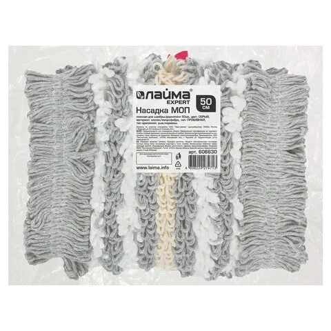 Насадка МОП плоская для швабры/держателя 50 см, ТИП У/К, хлопок/микрофибра, СЕРАЯ, LAIMA EXPERT, 606