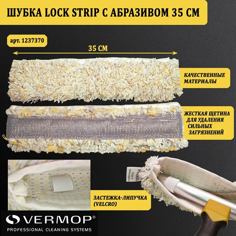 Насадка шубка для мытья окон Vermop Lock Strip 35см, с абразивом, на липучке, 237370