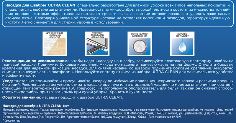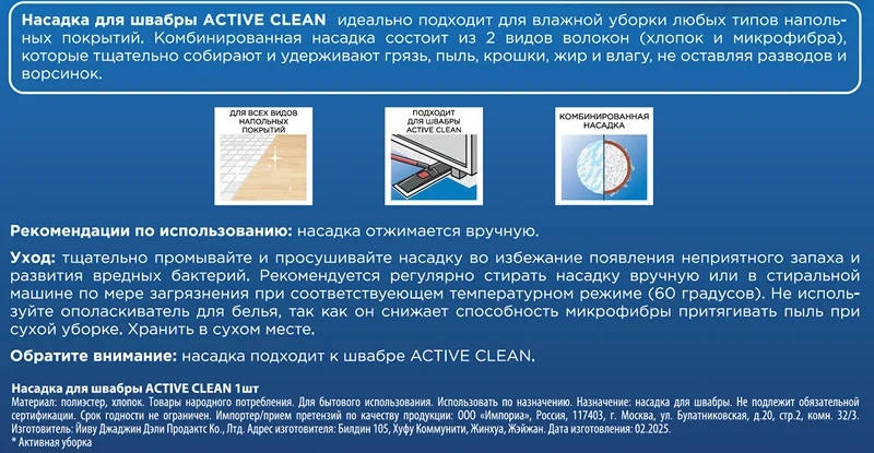Сменная насадка Hausmann Cosmic для швабры Care Clean HM-67