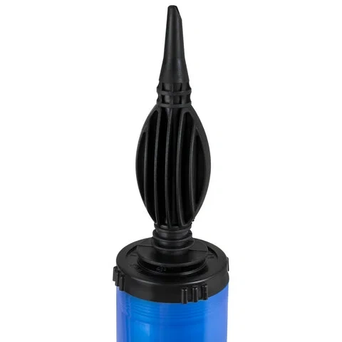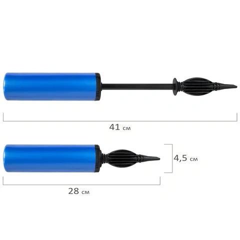 Насос компактный, лёгкий и удобный в использовании, справится даже ребёнок. Будет работать в любом месте без электричества. Выполнен из пластика синего цвета. Длина насоса в сложенном виде - 28 см. Насос двухходовой надувает воздушные шарики при движении в обе стороны, что существенно экономит время и силы. Подходит для всех видов воздушных шаров, благодаря скошенному носику можно надуть шарик любого размера.