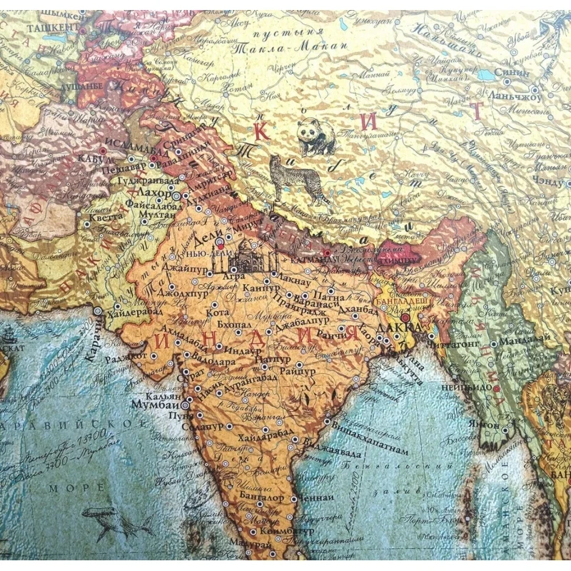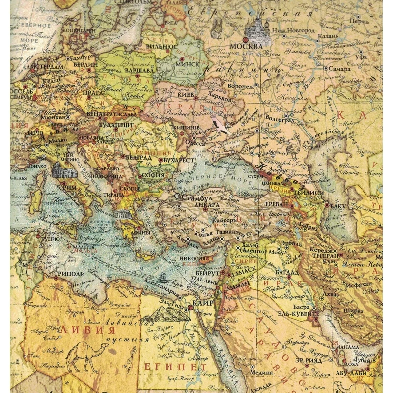 Настенная карта Атлас Принт Мир политическая, М-1:22 000 000, 154х107см, в стиле ретро