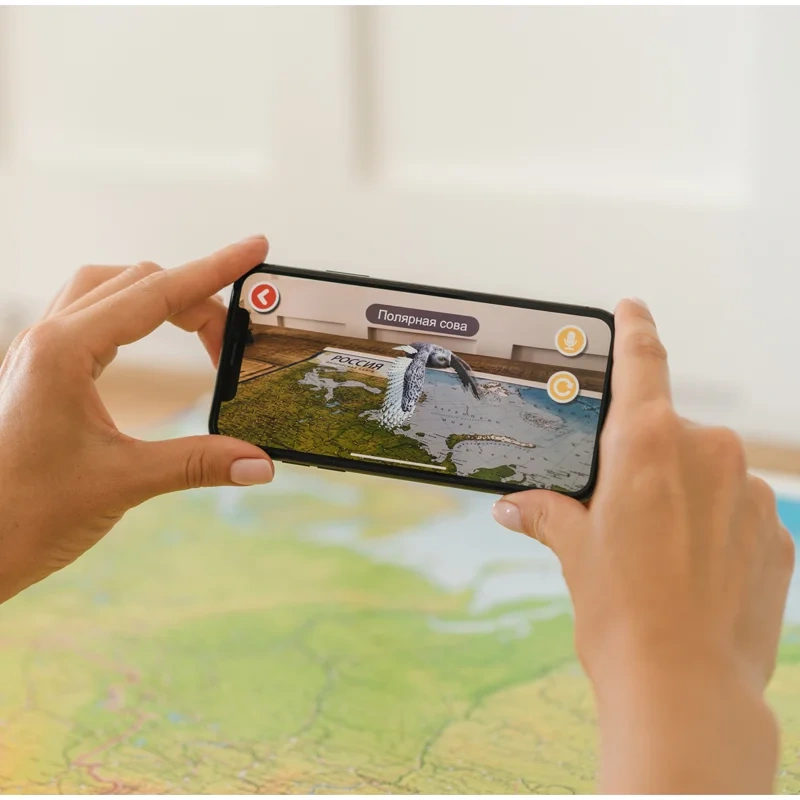 Интерактивная физическая карта Российской Федерации Globen - новое современное учебное пособие с элементами дополненной реальности для изучения географии и окружающего мира. Достаточно просто скачать бесплатное приложение IQ Map на смартфон или планшет, чтобы простая карта превратилась в 'живую'. Навести камеру смартфона на карту, подождать несколько секунд до появления эффекта AR-технологий. Такая карта, использующая AR-технологии, поможет ребенку намного быстрее и лучше усвоить новую информацию, научит ориентироваться на карте, привьет интерес к новым знаниям. Без использования приложения карта Мира является серьезным учебным пособием. Выполнена с точным соблюдением масштаба, принятых условных картографических обозначений. Таблица условных обозначений вынесена в отдельный список. Классическая цветовая гамма изображения общегеографической карты. Кроме географических объектов на карте отмечены города, границы областей и республик, сеть дорог. В нижней части карты расшифровка числовых обозначений и дополнительная информация.