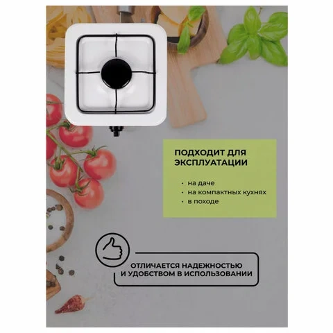 В комплект входит сменная форсунка для работы на природном (сетевом) газе, возможно подключение к баллонному газу. Она идеально подходит для небольших кухонь и может быть установлена на столе.
