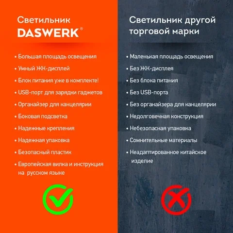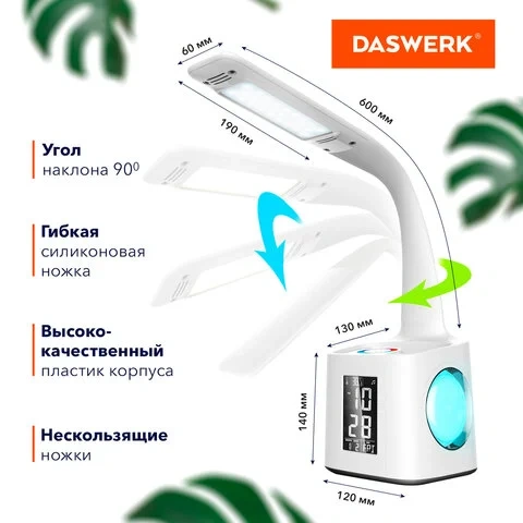 Настольная лампа светильник ночник с органайзером и дисплеем '8 в 1', LED 10 Вт, DASWERK, 238324
