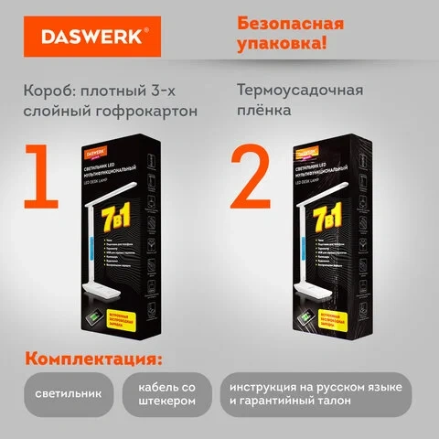 Настольная лампа светильник с дисплеем и беспроводной зарядкой '7 в 1', LED, 10 Вт, белый, DASWERK,