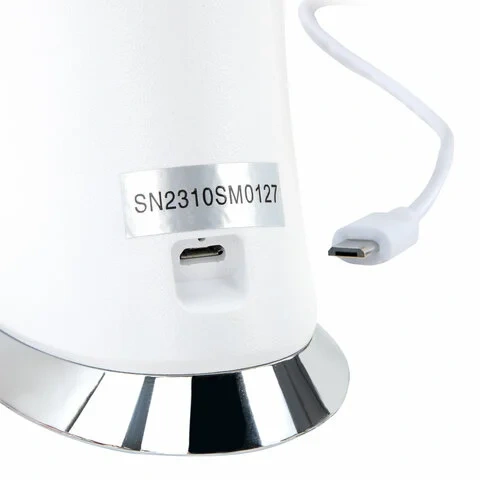 Лампа высотой 41 см представлена в классическом белом дизайне, благодаря которому гармонично впишется в офисный или домашний интерьер. Устройство оснащено легким пластиковым корпусом и яркой LED-матрицей на 5 Вт. Освещение с цветовой температурой 5000 K и световым потоком 250 Лм обеспечивают 25 светодиодов. У прибора есть сенсорный выключатель.
